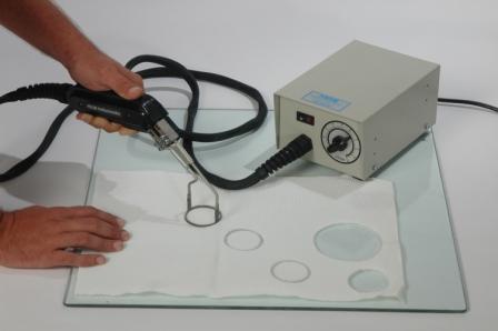 Zum Verschweißen von Rändern gewebter Filze und Schwergewebe.